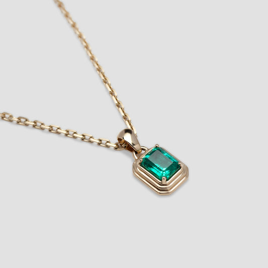 Gold Anelli Necklace Emerald Pendant
