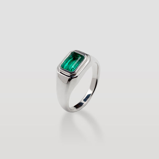 Sterling Emerald Signet Ring