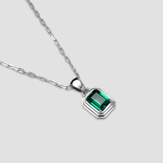 Sterling Anelli Necklace Emerald Pendant
